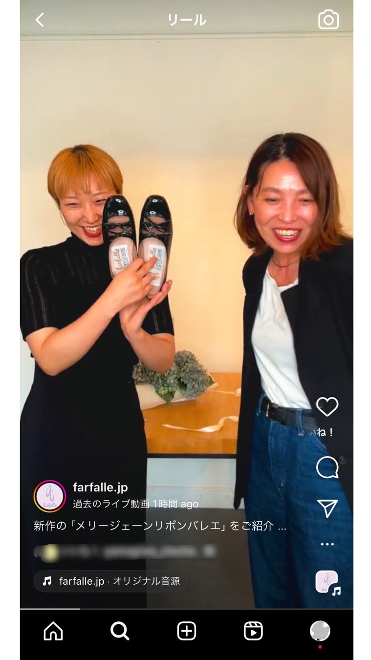 この「メリージェーンリボンバレエ」を企画したファルファーレオンラインショップの横田絵理子(写真左)は、「このメリージェーンリボンバレエは、今までファルファーレを知らなかった20代の若い方にも、ファルファーレを手に取るきっけになって欲しい1足です。