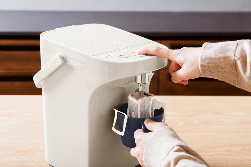 幅広い年齢層の方にお使いいただけるよう、シンプルなデザインを採用。大きく押しやすい操作ボタンや、見やすく注ぎやすい注ぎ口など、使いやすさにもこだわり、着脱式の上ぶたでお手入れも簡単です。
