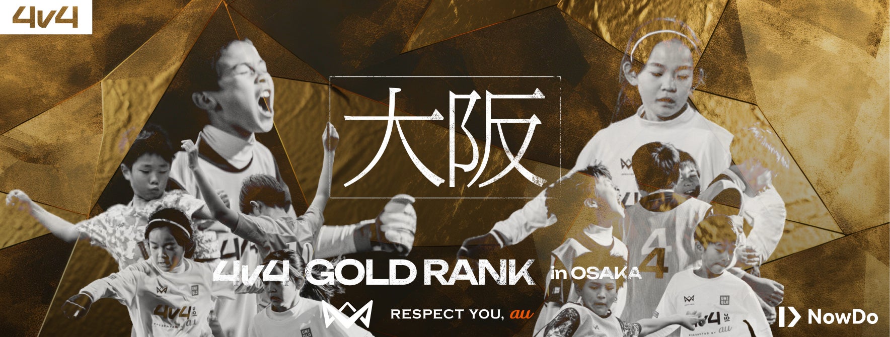 NowDo株式会社(所在地:東京都新宿区、代表取締役社長:本田圭佑)が運営する、育成年代向けの4人制サッカー全国大会「4v4」は、予選ラウンド「GOLD RANK in OSAKA」を2024年8月22日(木)に開催することをお知らせいたします。U10は大阪府八尾市のノア・フットサルステージ久宝寺で、U12は大阪府茨木市のノア・フットサルステージ茨木にて行い、スペシャルゲストには、4v4発起人の本田圭佑が来場いたします。