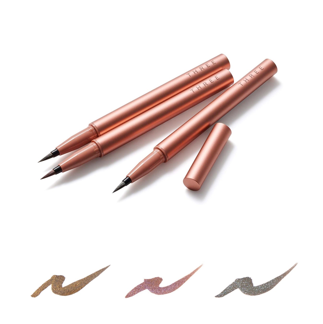 クラシカルなきらめきとスモーキーな発色。極細0.1mmのしなやかな筆先が1ストロークで美しいラインを描く、テクニックレスなリキッドアイライナーの限定カラー。繊細なパールがきらめきを加えることで、深みあるカラーがしっかり発色し、目もとの印象をエフォートレスに仕上げます。