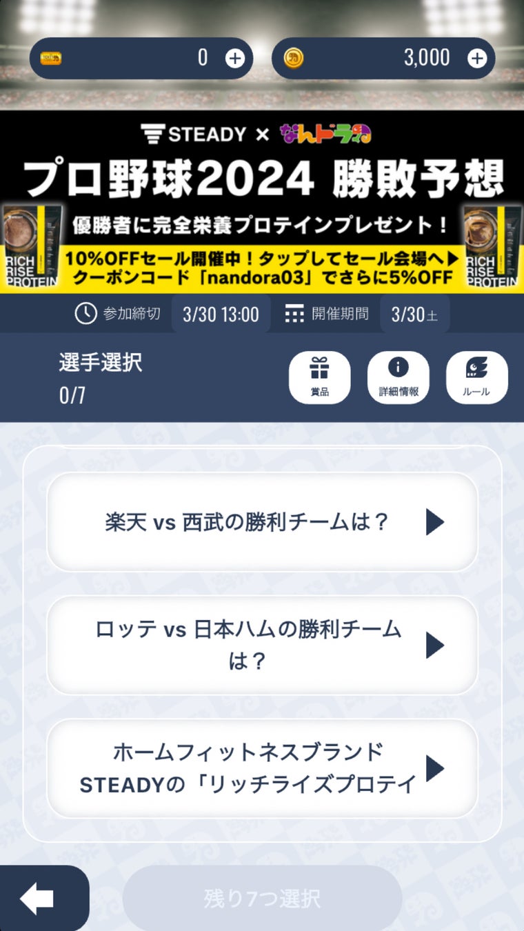 対象日のプロ野球公式戦で活躍する選手や勝敗を予想!各予想の成績1位にはSTEADYの“完全栄養プロテイン”をプレゼント!