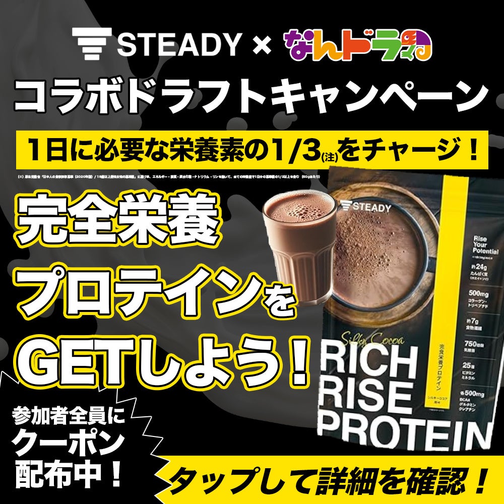 ホームフィットネスブランド「STEADY」×「なんドラ」 “完全栄養プロテイン”が当たる !プロ野球 活躍選手 / 勝敗予想企画を開催!