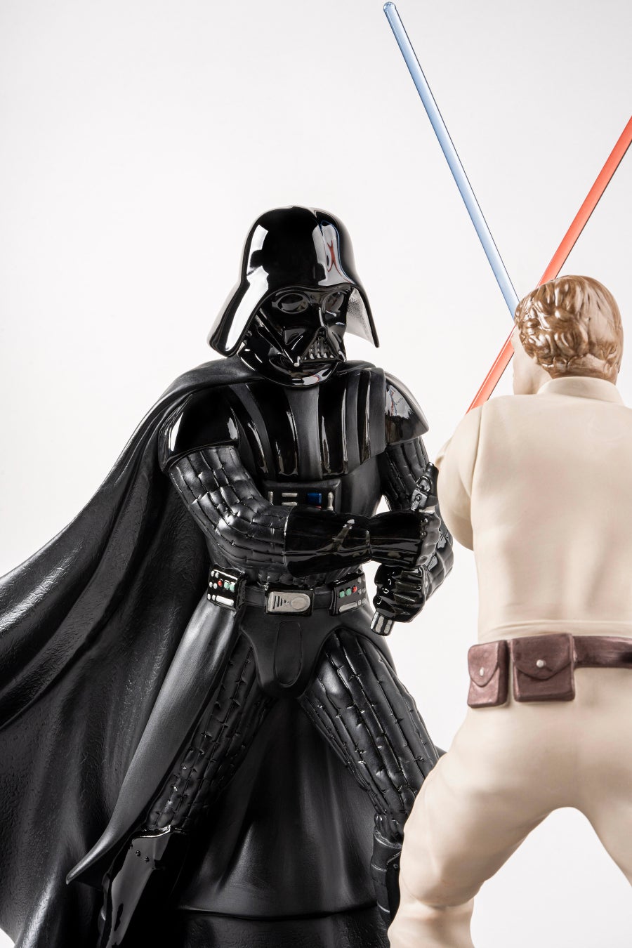 銀河内線を背景にした、惑星べスピンのクラウド・シティでの対決は、『スター・ウォーズ』サーガで最も象徴的な瞬間のひとつです。「べスピンバトル」は、「ダース・ベイダー」が、「ルーク・スカイウォーカー」の父親である、「アナキン・スカイウォーカー」であることを明かす、決定的な場面です。戦いの情熱、緊張感、エネルギーが見事に表現され、キャラクターのディテールを尊重した装飾によってさらに引き立てられています。「スター・ウォーズの日」にちなんで、全世界504個の限定制作です。