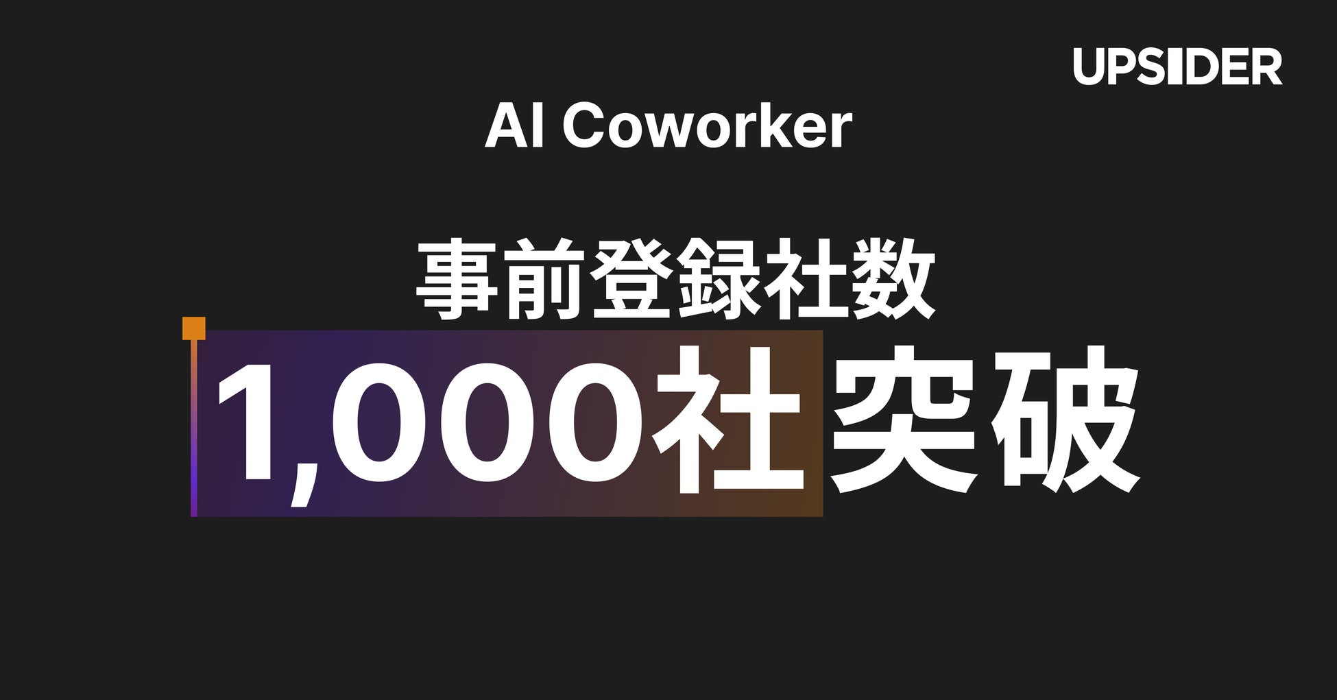 発表後1日で事前登録100社を突破したAI Coworkerは、その後も多くの方から期待をしていただき、今回、リリース前に1,000社を突破しました。事前登録いただいた皆様には、AI Coworkerに関する情報を先行してお伝えしています。