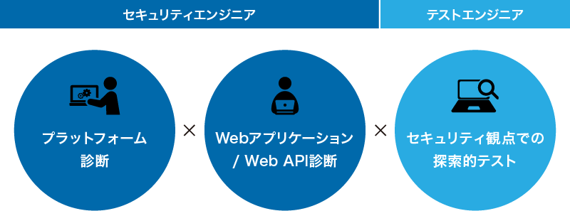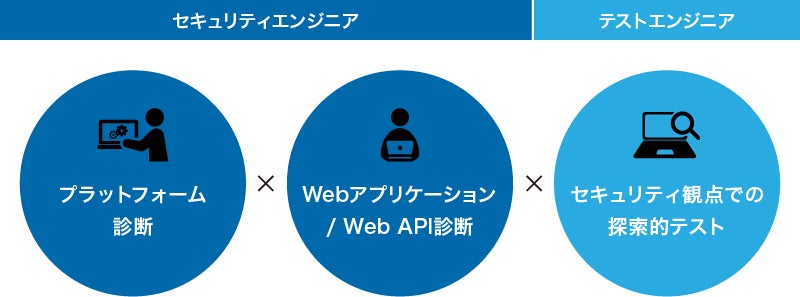 また、当社独自の特徴として、セキュリティの専門家とソフトウェアテストの専門家がチームを組んで不具合を検出するため、従来のセキュリティ診断では対応することが難しかったユーザー視点での診断が可能になります。