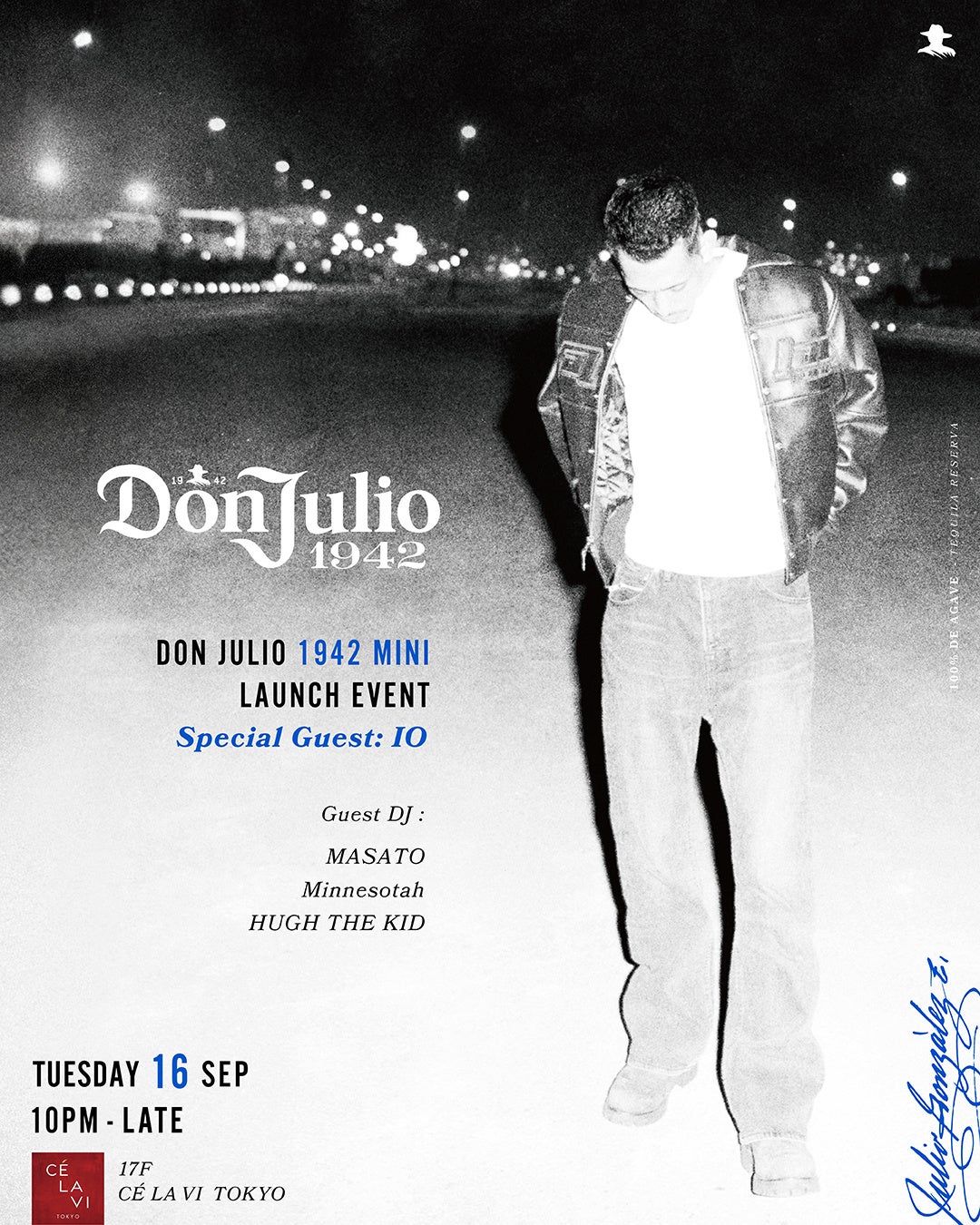 発売を記念し、同日には東京・渋谷の「CÉ LA VI TOKYO」にて、ドン・フリオの世界観を体感することのできるセレブレーションイベントを実施します。同イベントでは、日本人唯一となるオリジナルデザインボトル(非売品)をコラボ制作した事でもブランドとの関わりが深いRapper:IOによる一夜限りのスペシャルパフォーマンス、縁のあるDJ陣によるDJ PLAYも予定しています。