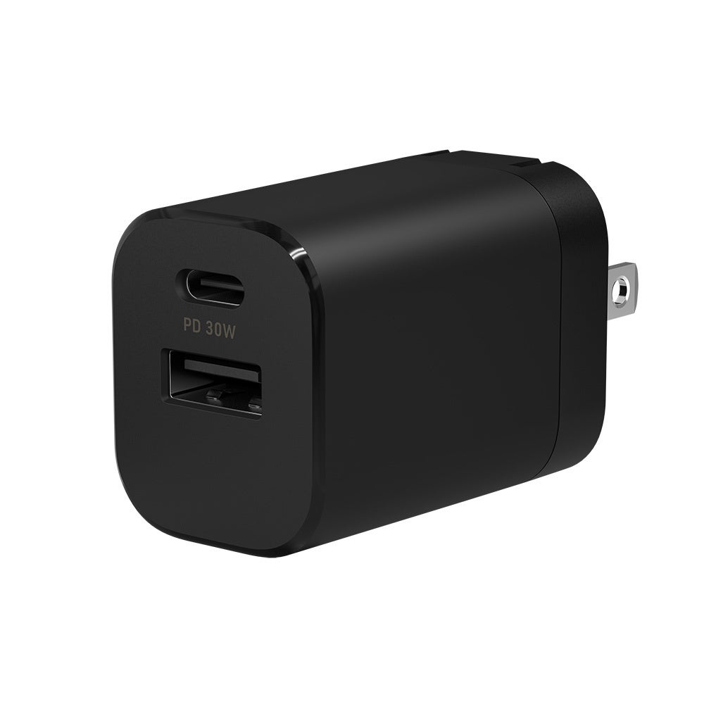 コンパクトなボディでもUSB PDで最大30W出力が可能なUSB Type-Cポートを搭載。USB Type-AポートはSmart ICで最大18Wの出力が可能なAC充電器です。プラグ部分は折りたたみ式のため、カバンやポケットにすっぽり収まり、携帯性にも優れています。