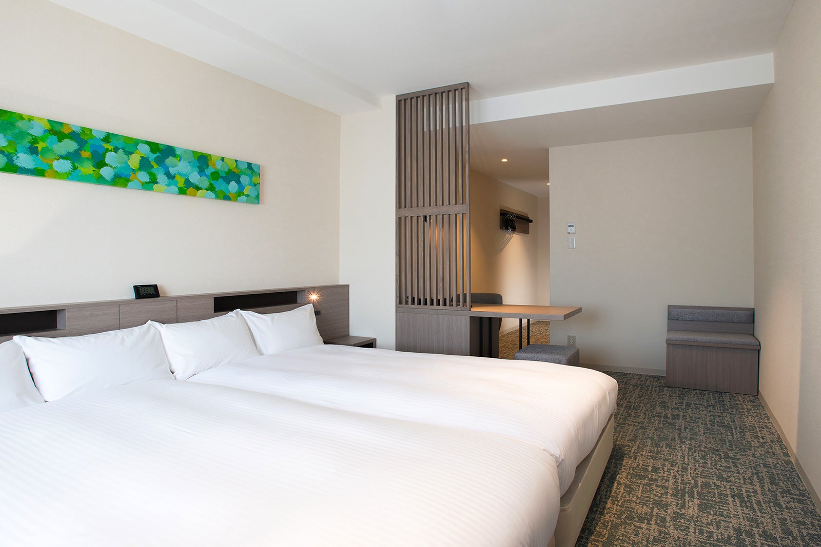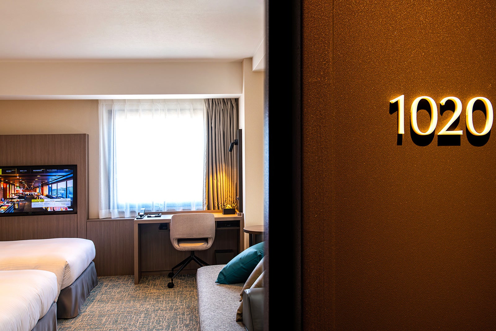 今回のリニューアルでは客室だけでなく、エレベーターホールや廊下、客室扉に至るまで、館内フロアを全面的にリニューアルし、ホテルに足を踏み入れた瞬間から新鮮な滞在体験を感じていただけるようになりました。モダンで洗練されたデザインと心地よい照明が織りなすエレベーターホール、静かな雰囲気と落ち着いた色合いで仕上げた廊下、そして温かみある木目調に統一された客室扉。館内の細部にまでこだわることで、滞在全体を通じて快適で心地よいひとときをお届けいたします。