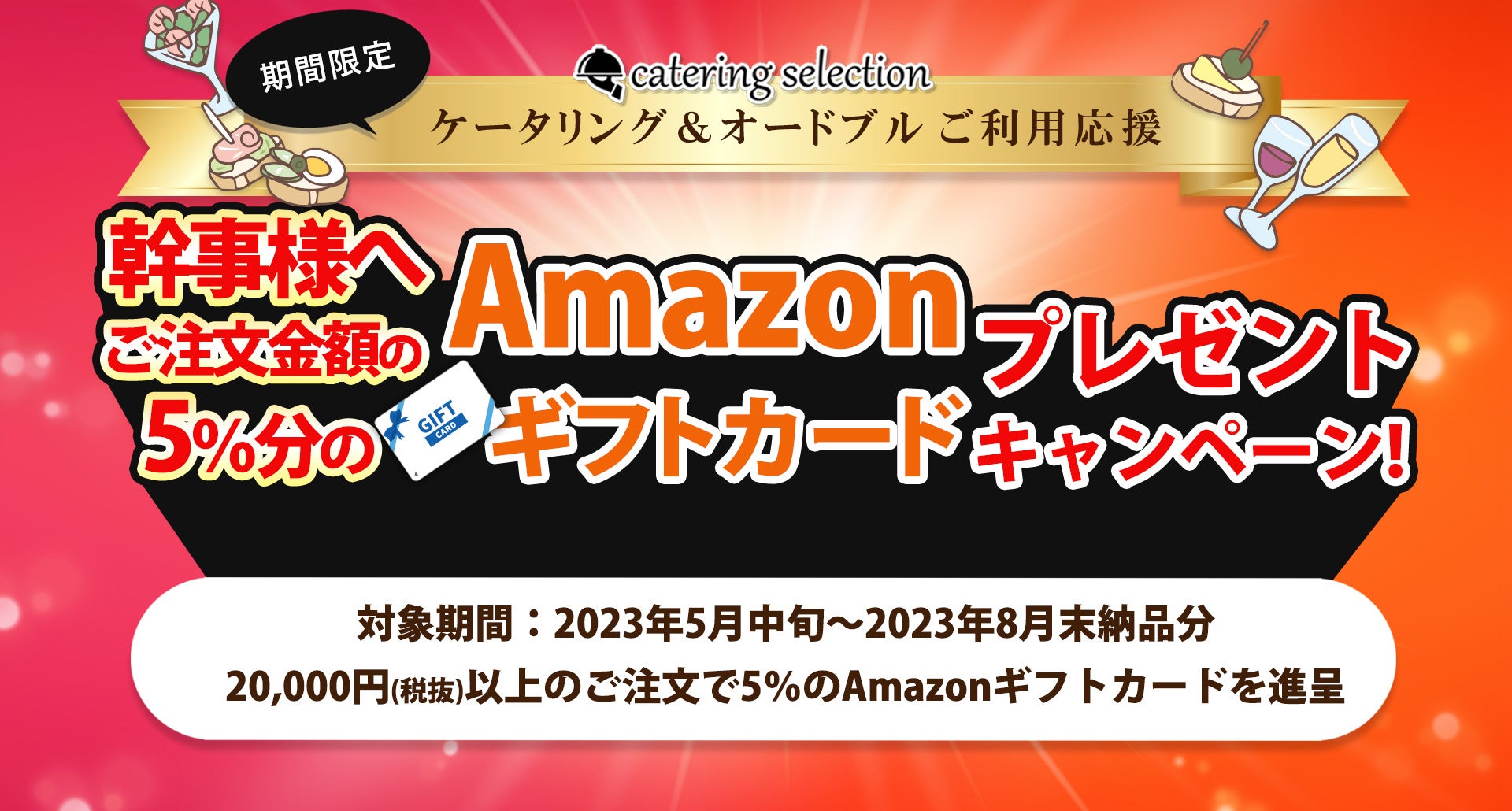 【注文合計金額の5%還元!】Amazonギフトカードプレゼント!食事会のケータリング・オードブルはケータリングセレクションで!