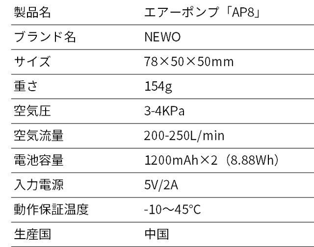 「AP8」とは画期的な空気圧と空気流量を持ち、重さわずか154g、様々なシーンで活躍するアウトドア用超ミニエアポンプです。