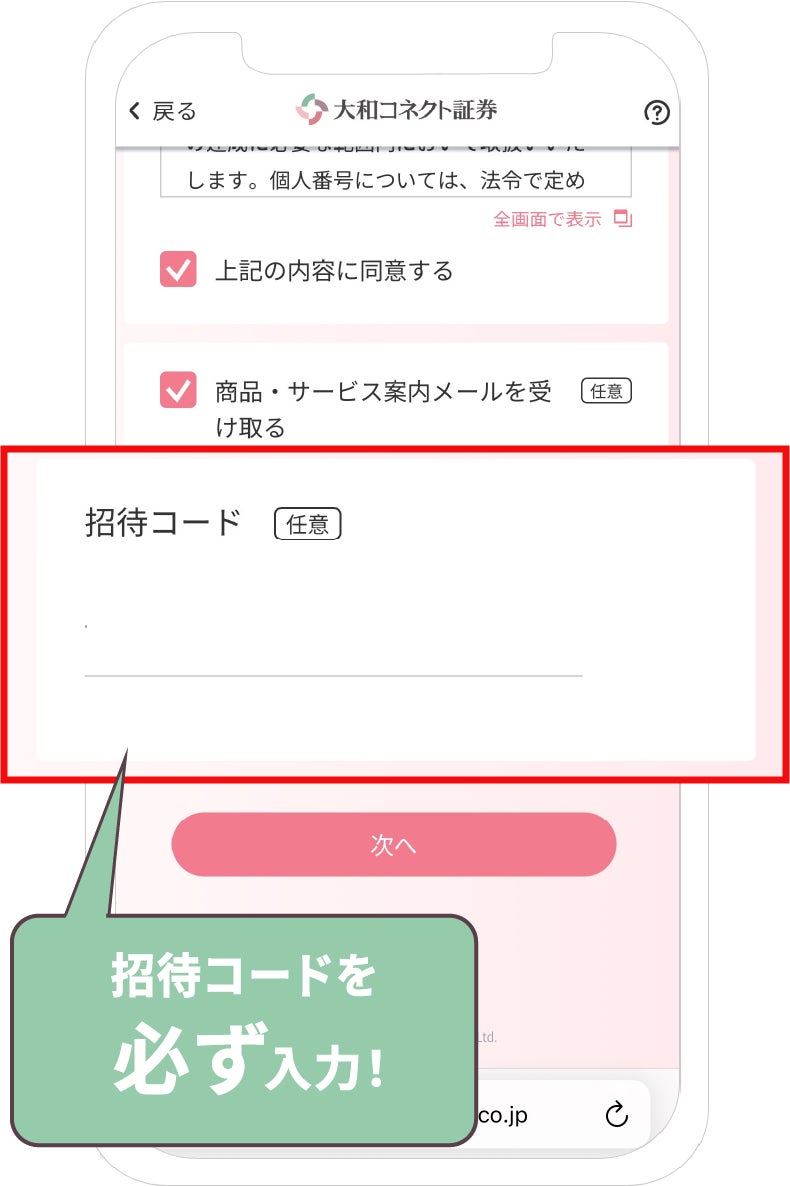 お友だちの招待コードを入力して、新規口座開設および初回ログイン※1を完了すると500Pontaポイントプレゼント!
