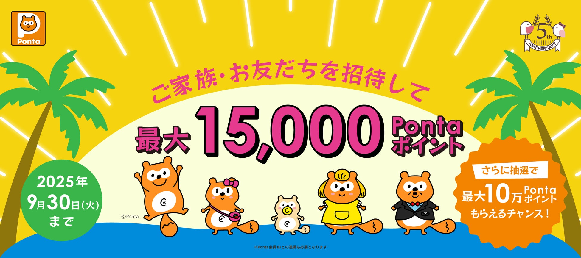 5周年記念!最大15,000Pontaポイントがもらえる!ご家族・お友だち招待キャンペーン!