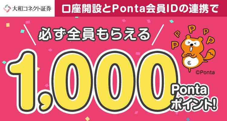 大和コネクト証券は、2025年7月1日(火)に開業5周年を迎えました。5周年を記念して、「最大15,000Pontaポイントがもらえる!ご家族・お友だち招待キャンペーン」を実施いたします!