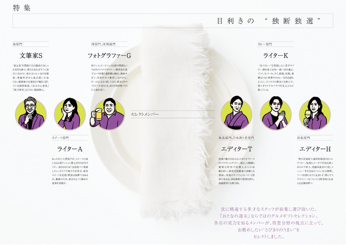 食の専門誌ならではの、臨場感あふれる写真がページをめくるたびに心をときめかせます。ギフト選びが、まるで一冊の読み物のように楽しめます。