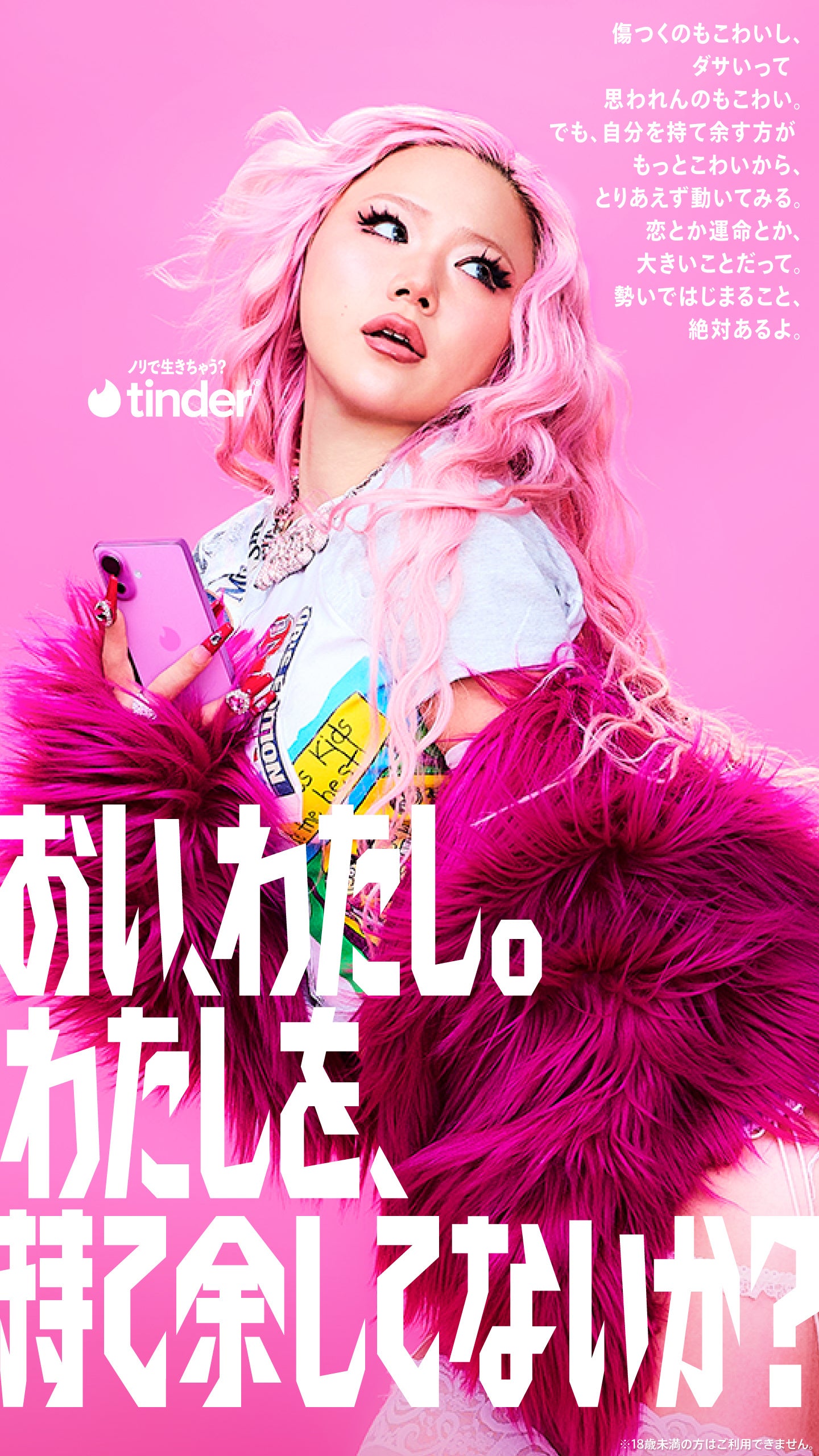 こうした背景を踏まえ、2026年のTinderは、「おい、わたし。わたしを、持て余していないか?」というブランドメッセージを掲げ、Z世代の方々が、一歩踏み出すことに躊躇する自分を鼓舞し、行動へ踏み出すキッカケとなるメッセージの発信をスタートします。