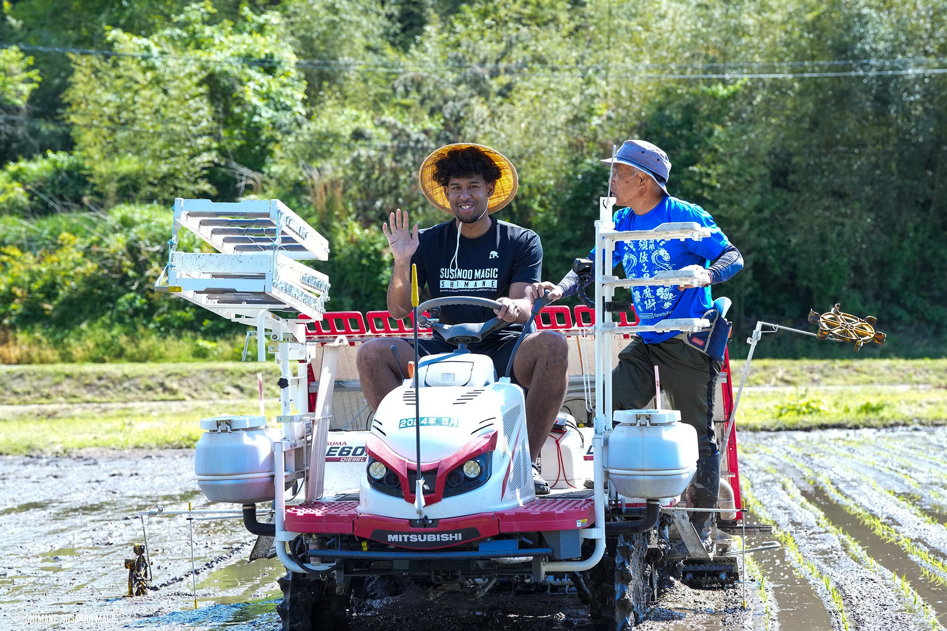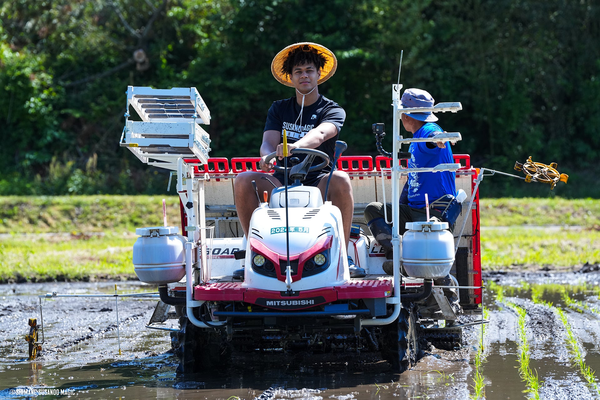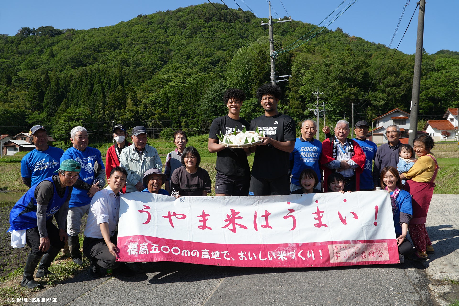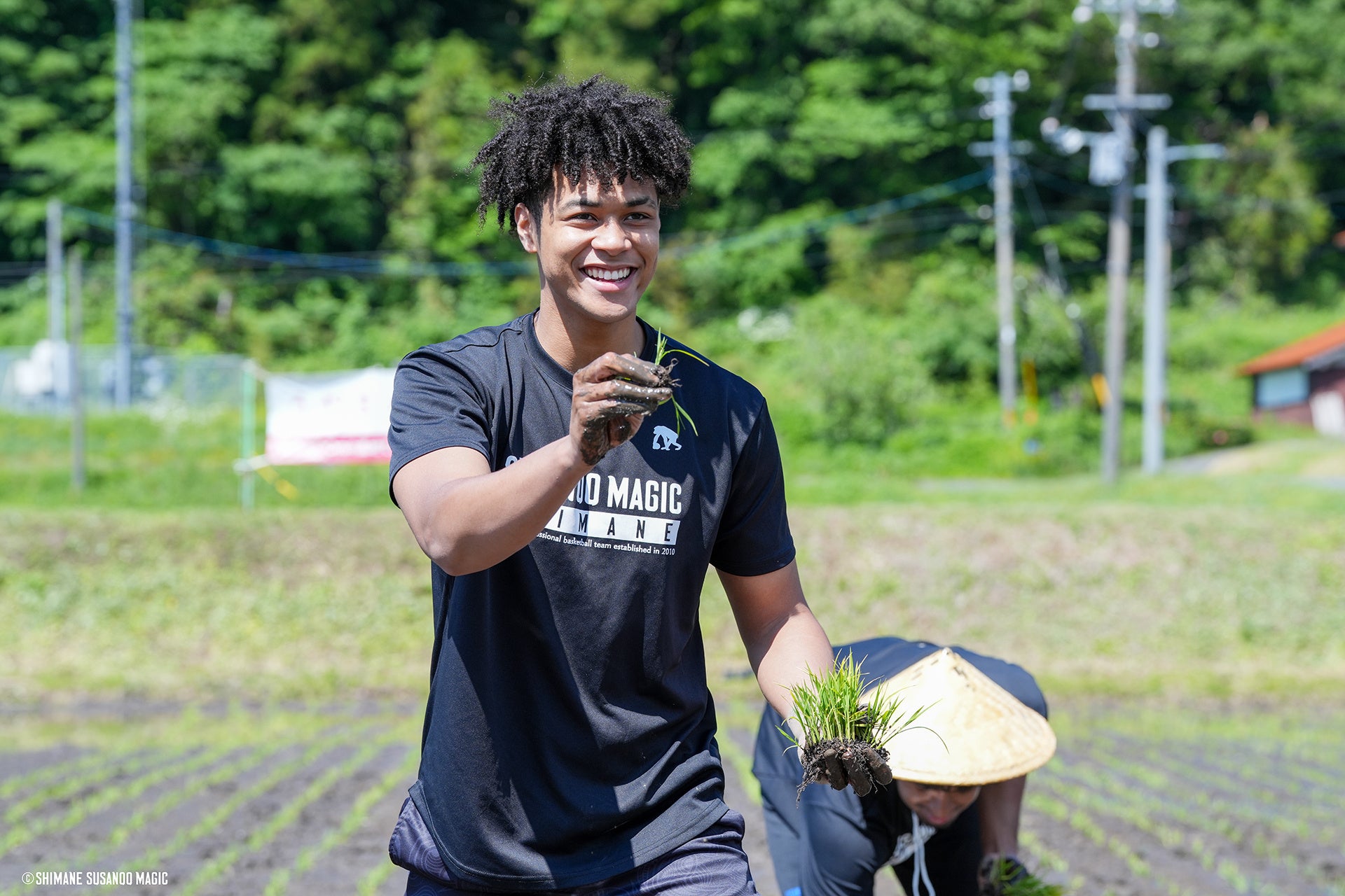 【島根スサノオマジック活動報告】横地聖真 選手& 介川アンソニー翔 選手が島根の大地で田植えに挑戦