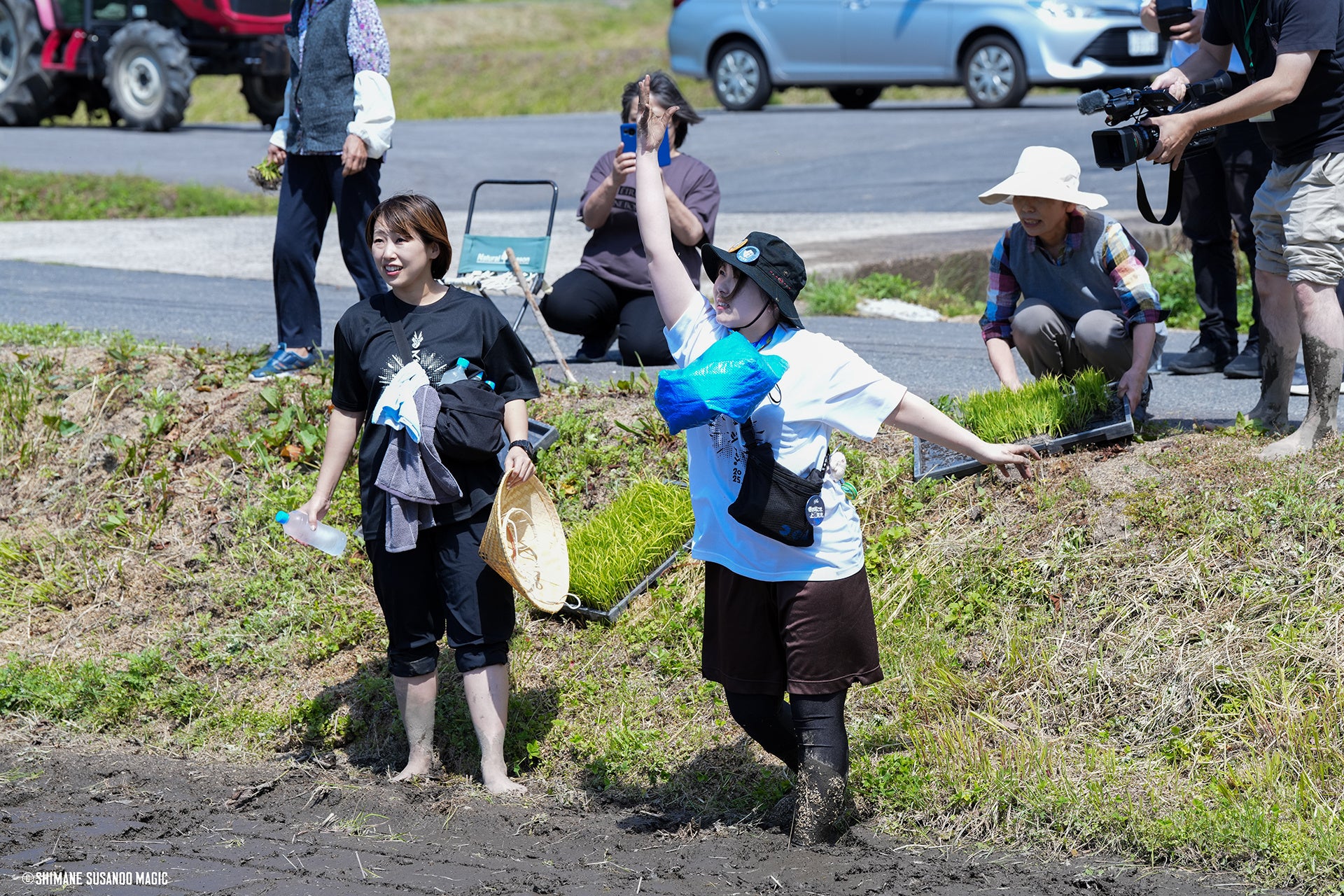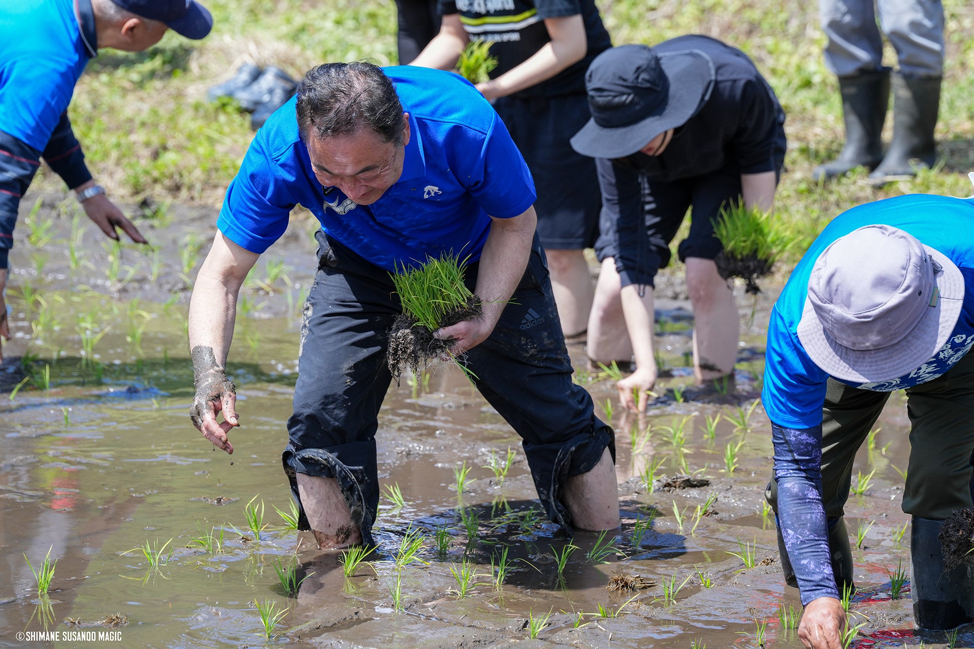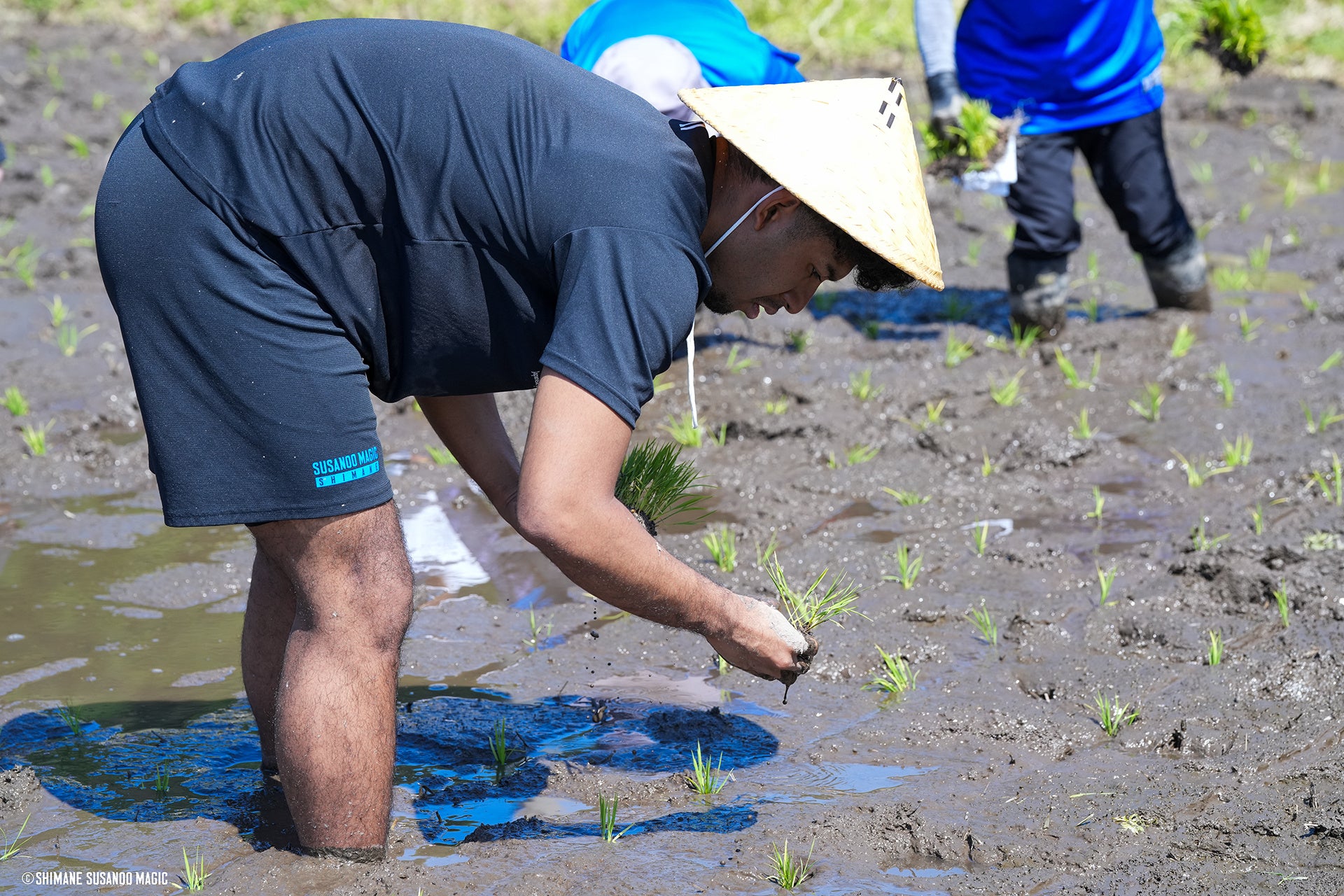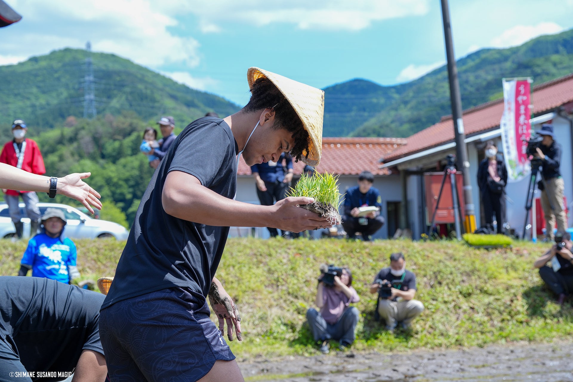 ルーキー2選手が島根の大地へ第一歩!「スサノオフードマルシェ」新プロジェクト始動 〜田植え&試食体験を実施しました〜