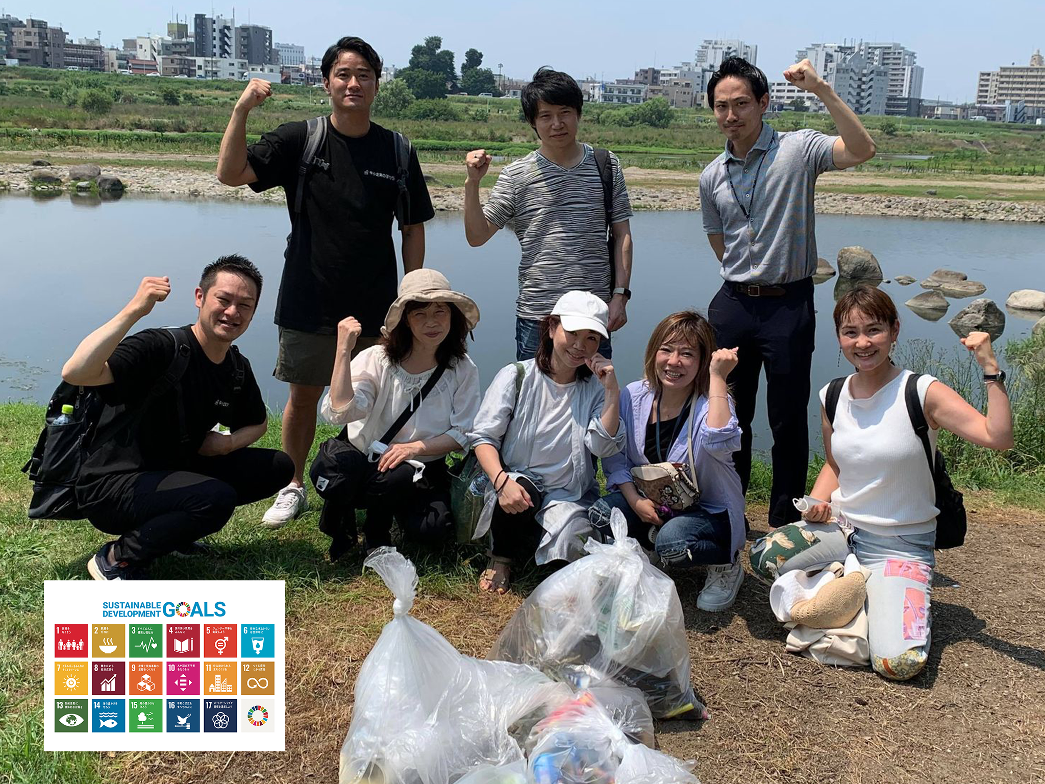 SDGsを広げる活動の一環として多摩川沿いの清掃活動を行いました。「中小企業からニッポンを元気にプロジェクト」にご参画いただいている企業様にご参加いただき、この清掃活動をきっかけに、参画企業様同士で新たなビジネスチャンスを見出す機会にもなりました。また今後の取り組みについての意見交換等を行い、各社のSDGsに対する意識や施策等を知る時間となりました。