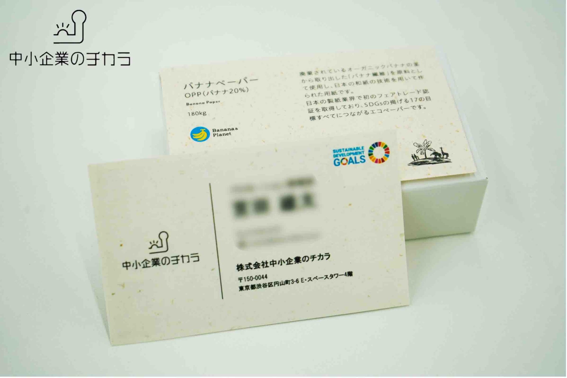 中小企業支援(ブランディング、WEB マーケティング、SDGs支援)事業を行う株式会社中小企業のチカラ(本社:東京都渋谷区、代表取締役社長:山下 佳介、以下「中小企業のチカラ」)( https://nippon-smes-project.com/ )ではSDGs活動の一つとして、廃棄される予定のバナナの茎を利用した「バナナペーパー」とプラスチック・紙の代替製品を成形する「ライメックス」を名刺に採用いたしました。中小企業のチカラ及び中小企業からニッポンを元気にプロジェクトは、引き続きSDGs活動・推進に努めてまいります。