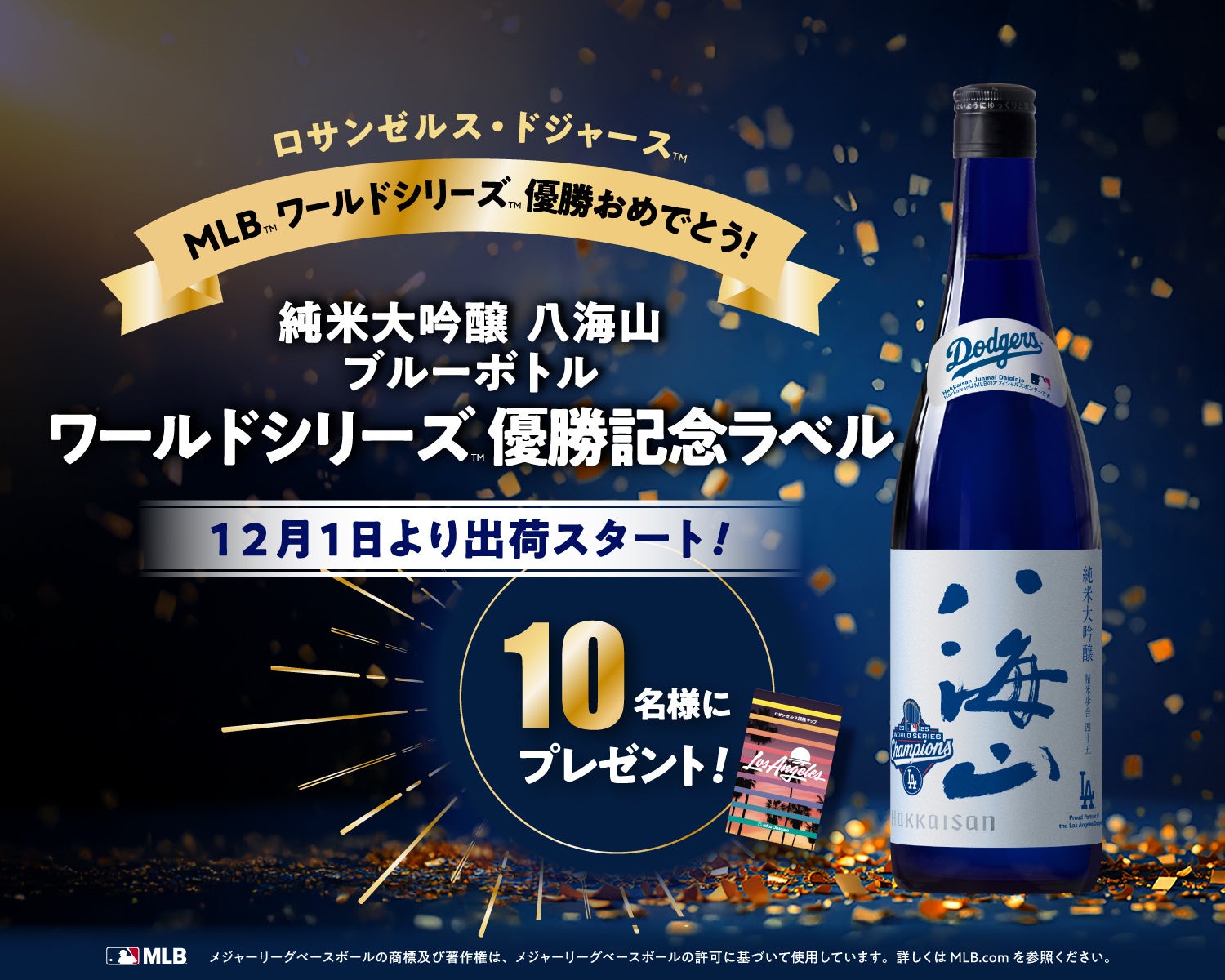 Hakkaisan 八海醸造株式会社グループ(本社:新潟県南魚沼市、代表取締役社長:南雲真仁、以下「Hakkaisan」)は、メジャーリーグ・ベースボール™(以下「MLB」)と日本国内におけるオフィシャルスポンサー契約を締結しております。MLBナショナルリーグ西地区所属のロサンゼルス・ドジャースが、2025 年のワールドシリーズで見事優勝を果たし、球団史上初となる2 年連続優勝を達成したことを記念し、MLB およびドジャースのチャンピオンロゴを配した限定ボトル「純米大吟醸 八海山 ブルーボトル ワールドシリーズ™優勝記念ラベル」を日本国内で限定発売いたします。