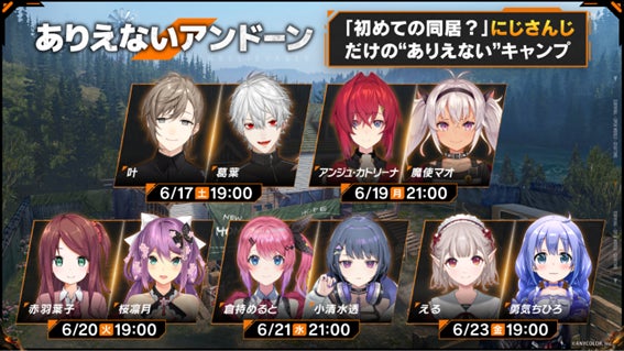 最後に紹介したのは、数多くの有名なクリエイターが参加した『Undawn』ゲーム内企画です。バーチャルライ バーグループ「にじさんじ」所属する10名の⽅が、『Undawn』世界で「同居」します。参加メンバー及び実施時間は、以下をご参照ください。