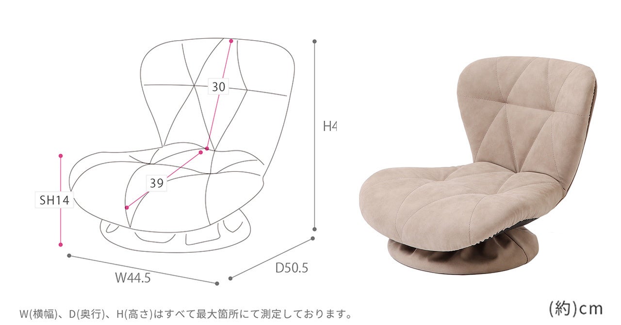 - サ イ ズ :(約)44.5cm×奥行50.5cm×高さ44cm、座面高(約)14cm