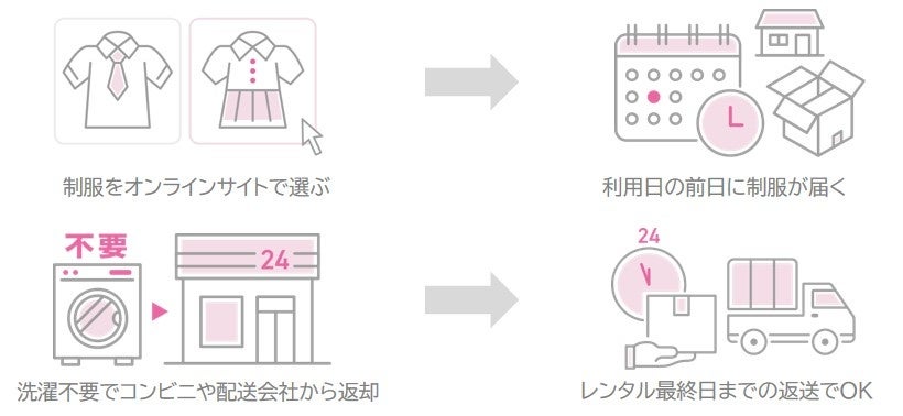 特別な場所でお気に入りの制服を着て楽しく写真を撮りたい方や、入学式や卒業式などのシーンでもご活用いただけます。中高生やZ世代の「かわいい制服を着て遊びに行きたい」「いつもと違う制服を着てみたい」「友達とお揃コーデがしたい」という夢をかなえ、思い出づくりを応援するサービスです。