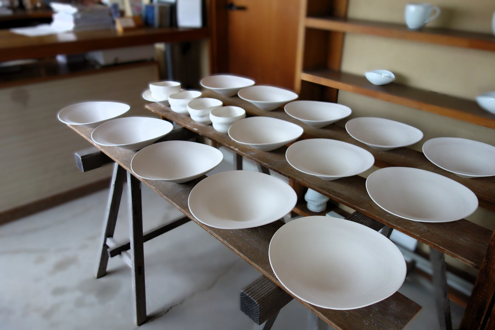 ・白磁の花器、ブーケスタンド、マグカップ等の展示販売