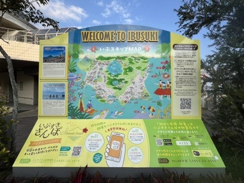 また、指宿市や観光施設の協力のもと、本マップのイラストデザインやQRコードが、同市内の看板や観光総合ガイドブック、屋外用ステッカーなどに掲載されています。
