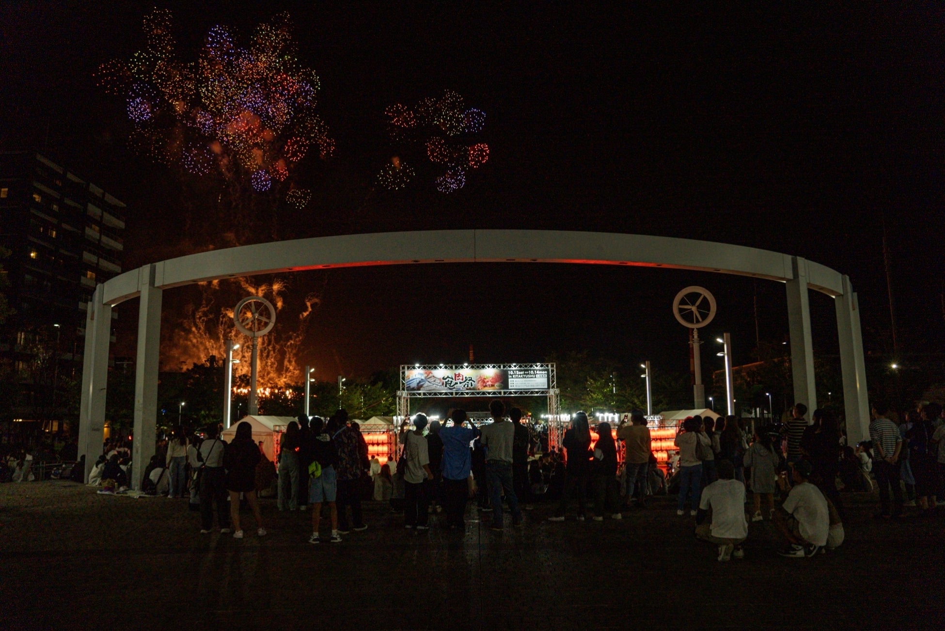 ステージイベントのラストを飾ったDUALのカウントダウンとともにスタートした花火ショーは、まさにイベントのクライマックスにふさわしい壮大なものとなりました。和牛の香りと花火と連動した音楽が漂う会場で、5,000発の花火が打ち上げられると、観客からは歓声と拍手が沸き起こりました。