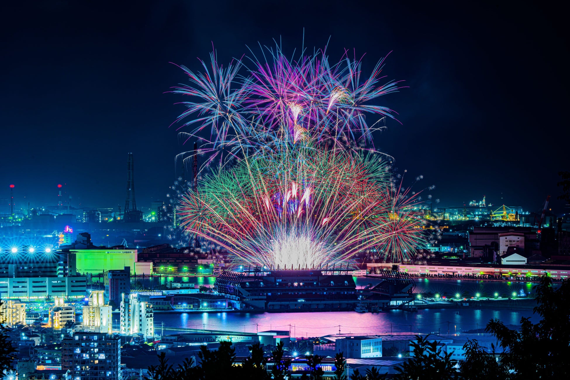 花火は音楽にシンクロし、次々と形を変えながら夜空を鮮やかに染め上げ、色とりどりの光が幻想的な景色を作り出しました。