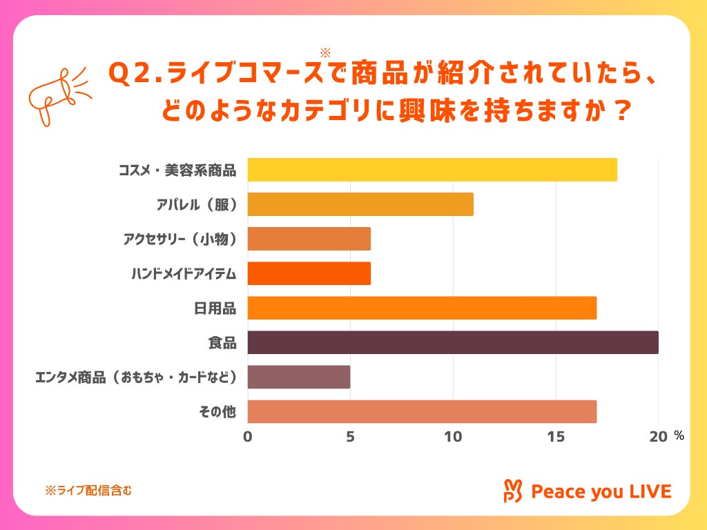 Q2.ライブ配信(ライブコマース)で商品が紹介されていたら、どのようなカテゴリに興味を持ちますか?