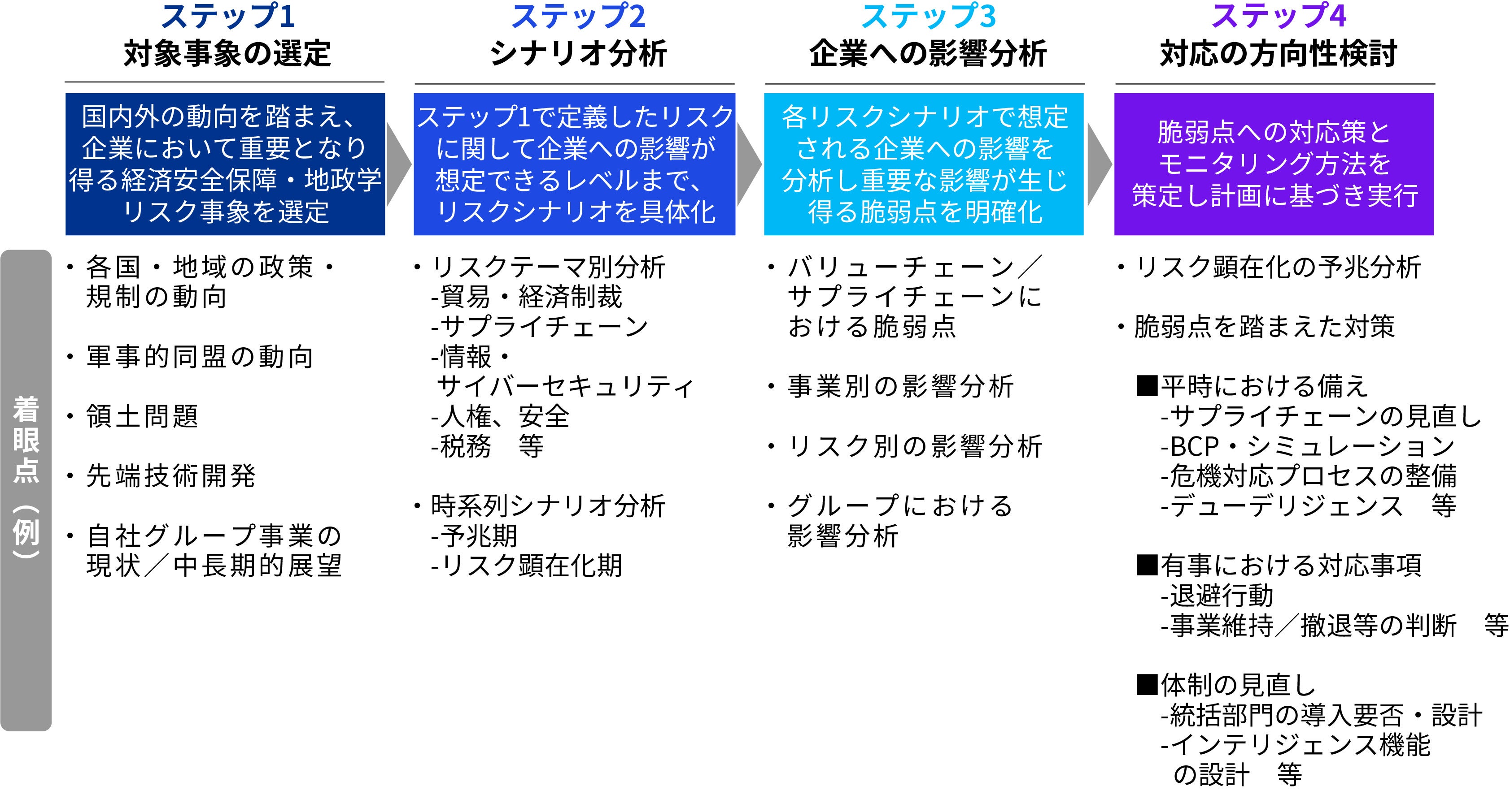 【経済安全保障・地政学リスク管理体制の構築における具体的な支援内容】