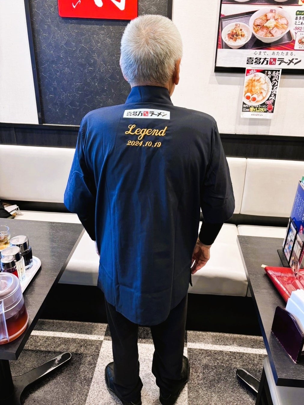この秋、喜多方ラーメン坂内 調布店のご常連のお客様が2年連続で「レジェンド」にランクアップされました。「レジェンド」はアプリご登録日から1年間で250回ご来店された方に付与される称号で、こちらのお客様はほぼ毎日、時には1日に2回のペースで来店されるなど、喜多方ラーメン坂内を日常の一部としてご利用下さっております。驚くべきことに2年連続で達成されたのは齢79歳(取材当時)のお客様であり、2023年は11月、2024年は10月中旬に再び「レジェンド」に到達しました。「レジェンド」の誕生は現時点では2人のみ。ランクアップ特典である“社長によりラーメン接待”にご招待し、坂内に対する情熱的な思いや貴重なご意見をお伺いすることができました。
