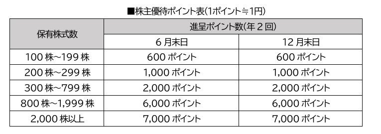 進呈条件:2025年4月以降、毎年6月末日・12月末日現在の株主名簿に記載又は記録された100株以上保有の株主様を対象といたします。