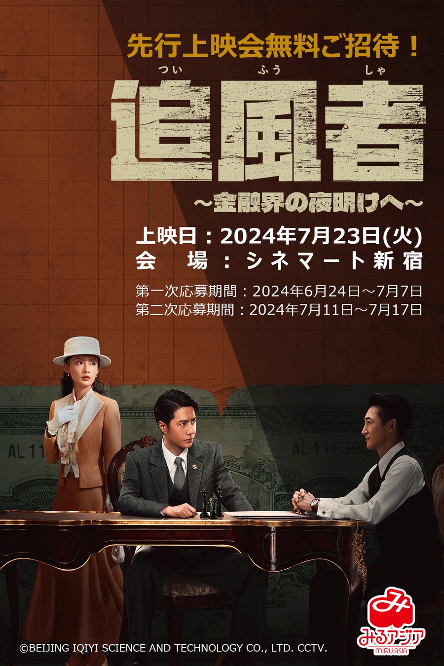 先行上映会に200名様無料ご招待。「みるアジア」ベーシック会員様向け限定イベントとして、「追風者:1話&2話+特別映像」上映会の実施にあたり、本日より参加応募受付を開始します。