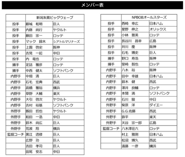 【対戦】 新潟朱鷺ビッグウェーブ(プロ野球OB編成)vsプロ野球OBチーム