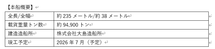 本船は、舞鶴発電所向けの既存専用船に次いで海外炭輸送船隊の一翼を担うべく、2026年後半の竣工を予定しています。