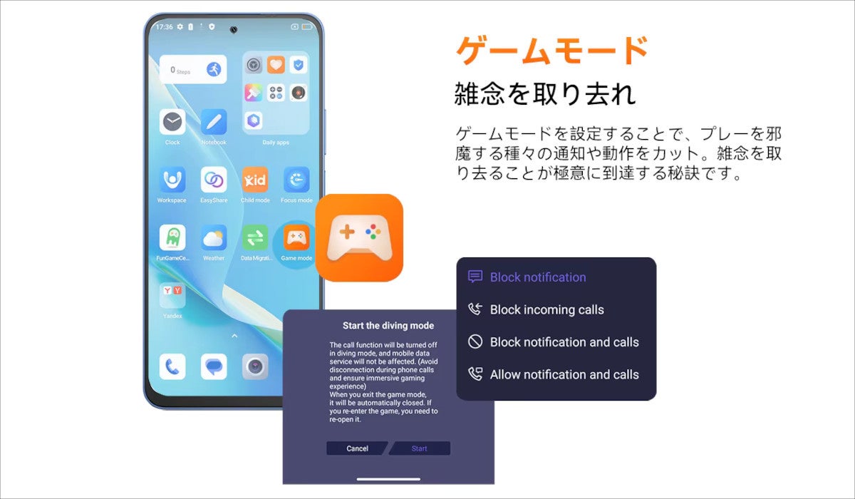 ゲームモードを使えばゲーム中の通知や電話着信をブロックできます。