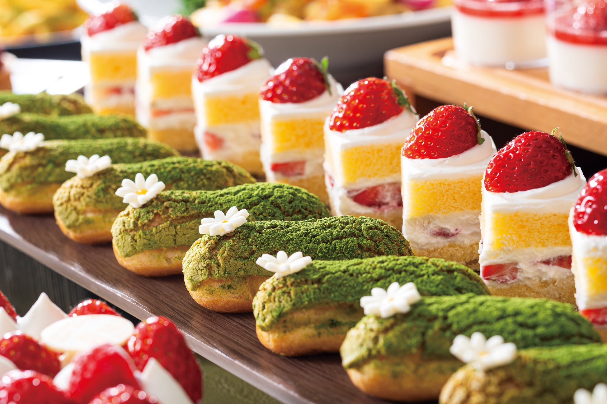 2025年1月より続いてきた苺スイーツブッフェのフィナーレを飾る「苺と抹茶のスイーツブッフェ」は、甘味と酸味のバランスがいい旬の苺と、香り高く奥深い味わいの宇治抹茶が主役のスイーツをご用意。