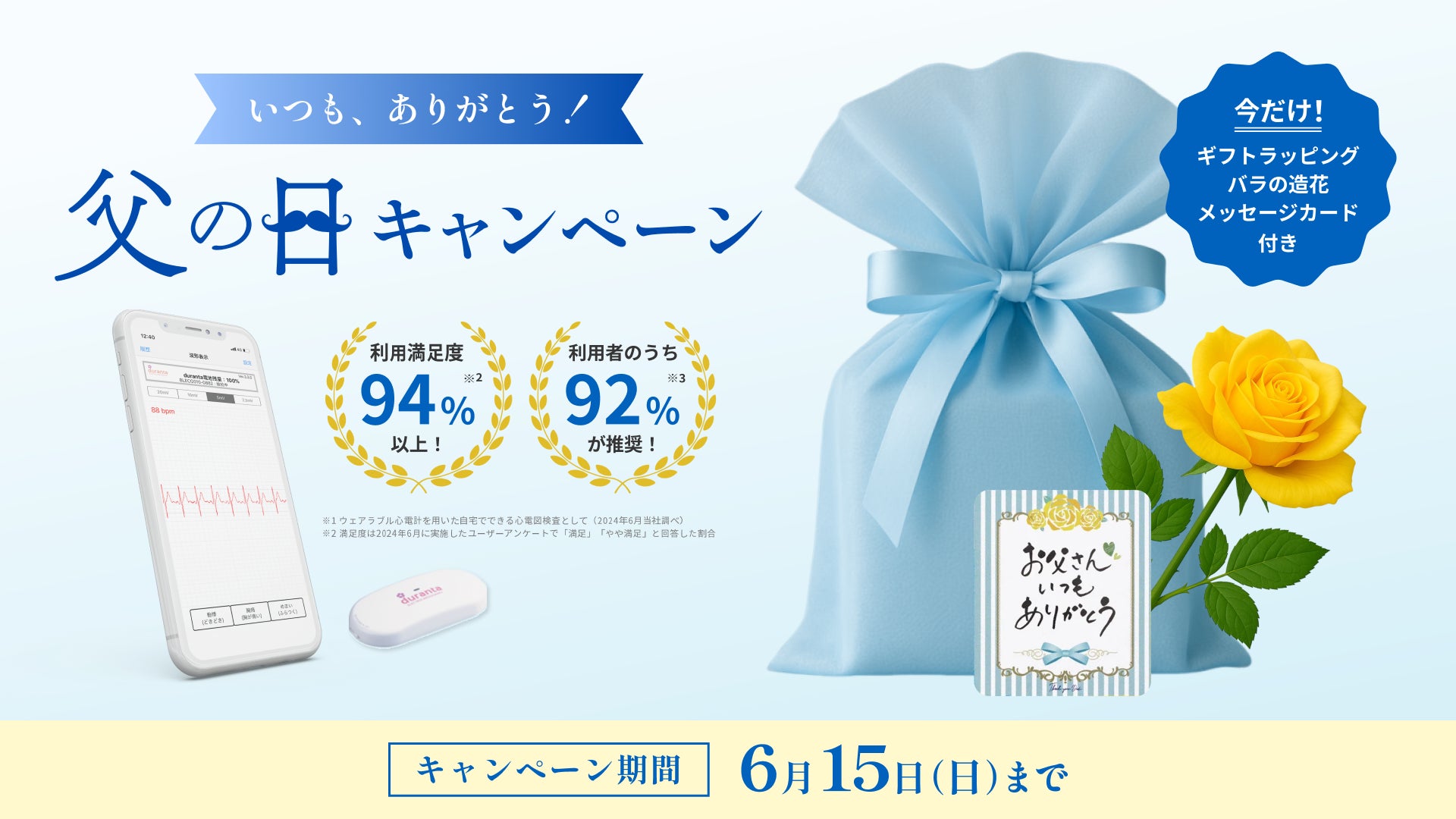 「病気で後悔しない社会へ」をミッションに、ウェアラブル心電計を用いた心電図解析サービスを運営する株式会社ココロミル(本社:東京都新宿区、代表取締役社長:林大貴、以下「ココロミル」)は、突然死や心疾患のリスクと向き合うきっかけを提供する「ホーム心臓ドック®」 シリーズの商品が最大20%OFFになる父の日キャンペーンを2025年6月15日(日)まで実施いたします。