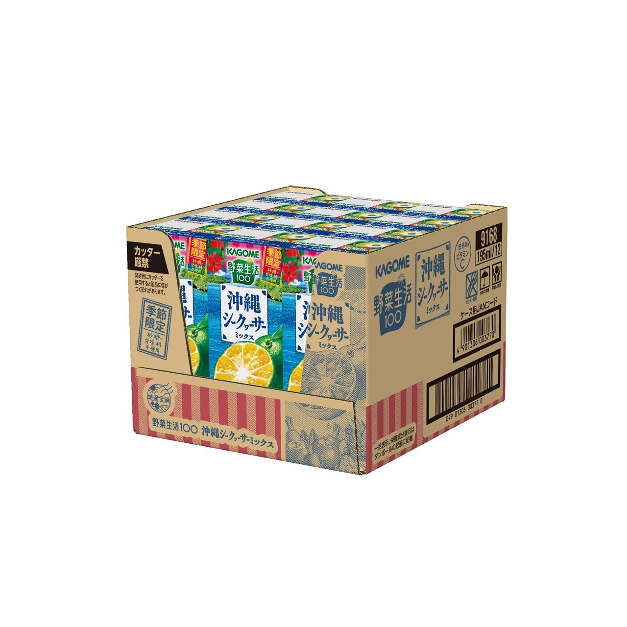 「野菜生活100 沖縄シークヮーサーミックス」は、さわやかな酸味と渋みのアクセントが特徴の沖縄県産シークヮーサーの味わいに仕上げた野菜&果実100%ミックスジュースです。パッケージの背景には、沖縄県の川平湾をデザインしています。朝食のおともやリフレッシュしたいときにおすすめです。
