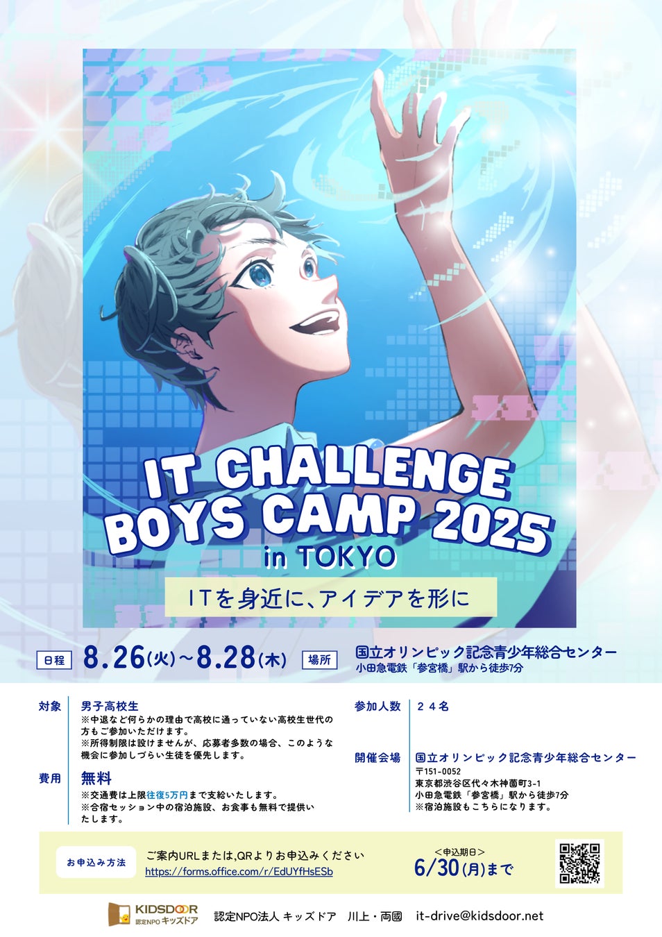 認定NPO法人キッズドア ITでアイデアを形にする「IT Challenge Boys Camp 2025」の生徒を募集