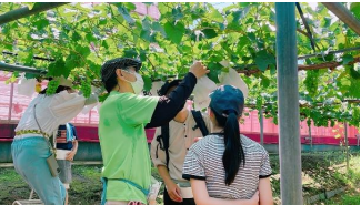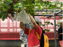 自然豊かな農園でシャインマスカットの袋掛け体験。