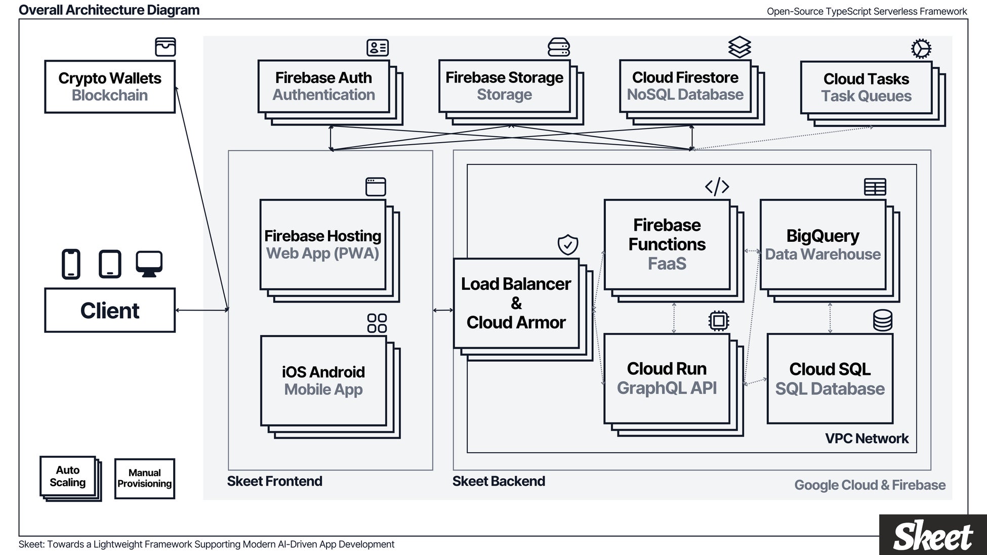 オープンソースのアプリ開発ツールSkeetのサーバーレスアーキテクチャ図を公開