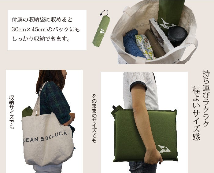使わないときは空気を抜いてコンパクトに収納することができます。カバンの中に入れても邪魔になりません。