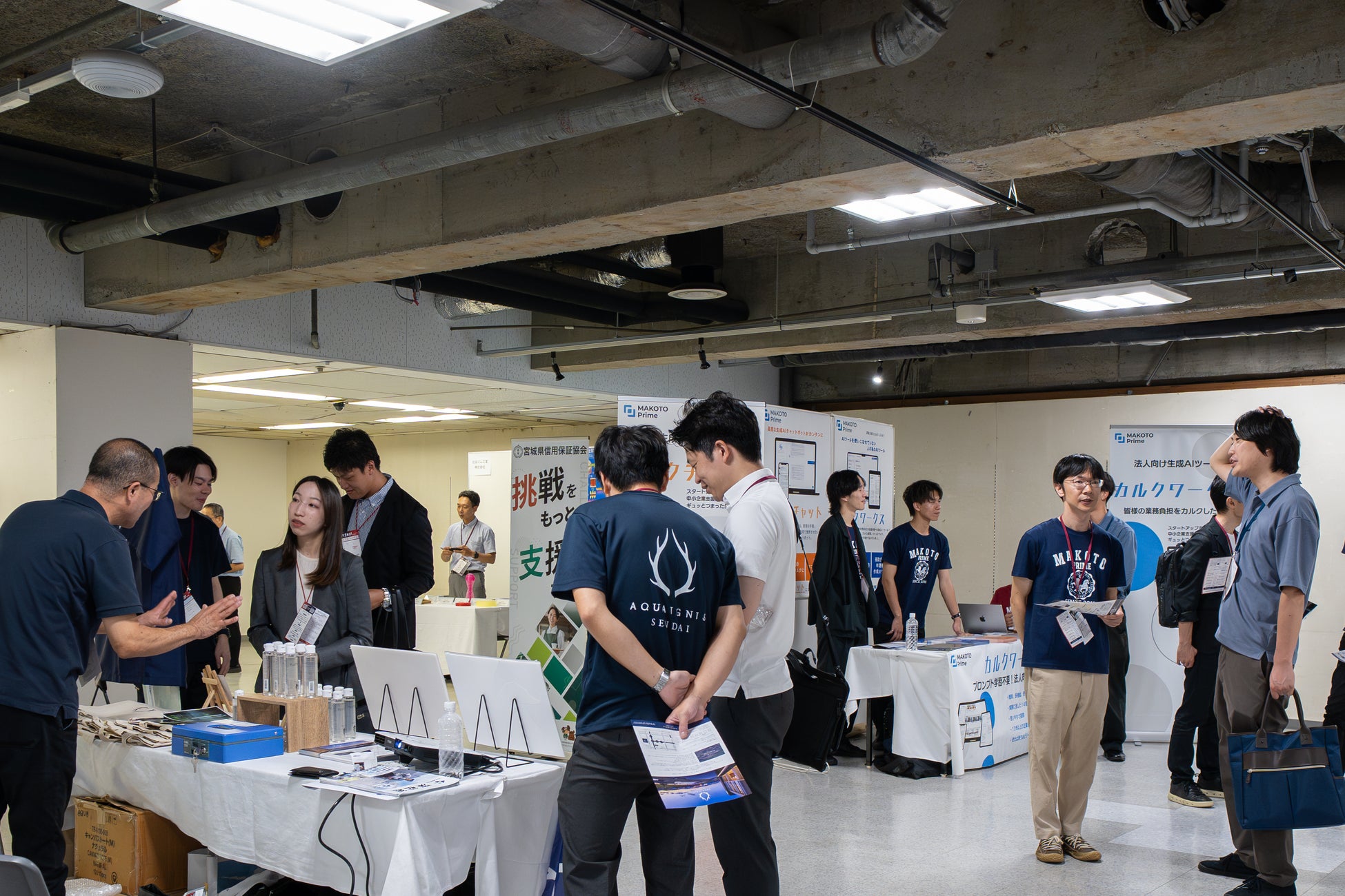 会場には東北各地から18社の企業・団体が出展し、プロダクトやサービスを紹介。ブースでは、来場者と出展者、さらには出展者同士の活発な交流が生まれていました。展示の枠を超え、この日を起点とした新たな共創が生まれる可能性を大いに感じさせる場となりました。