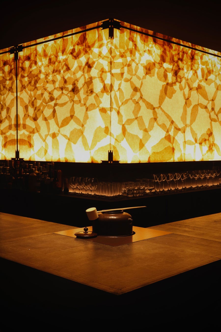 福岡今泉の賑やかな街並みから一本裏手に入った商業ビル内に位置する、「Remake easy博多天神」は、露地のようなアプローチを抜けると、障子を模したブロンズの光壁がゲストを迎え、和紙貼りのカウンターではRemake easyのパフェが作り上げられる様子が間近に見られます。