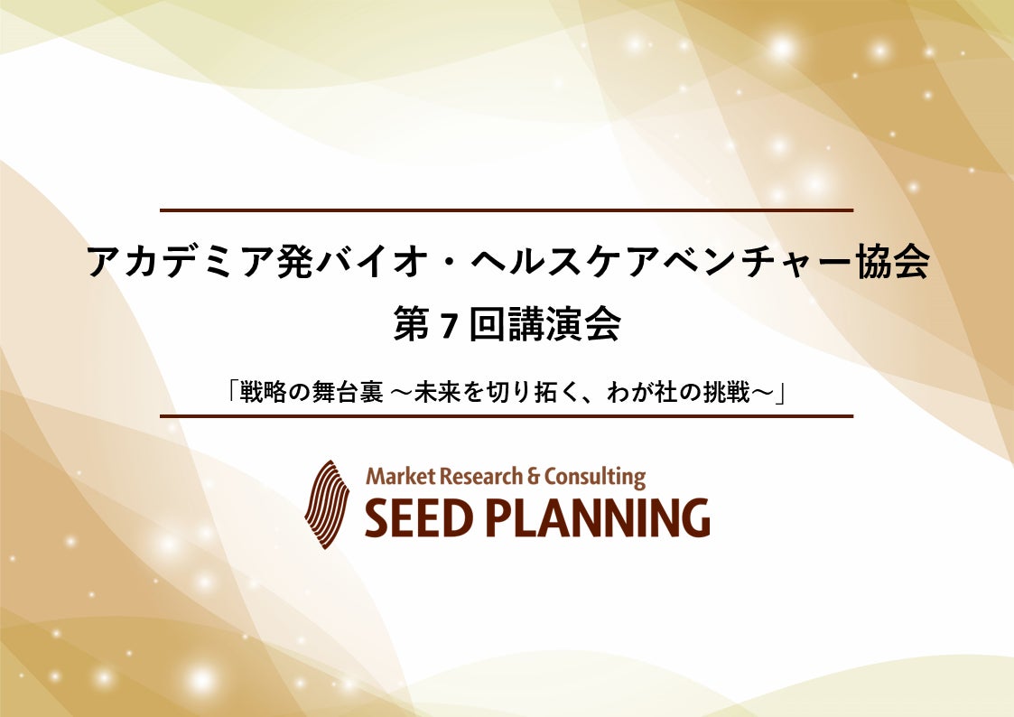 株式会社シード・プランニングが事務局を務める「一般社団法人アカデミア発バイオ・ヘルスケアベンチャー協会(理事長:森下 竜一 大阪大学 医学系研究科 教授)」が、2025年4月23日(水)14:00より、「戦略の舞台裏 ~未来を切り拓く、わが社の挑戦~」のテーマで第7回講演会を開催いたします。