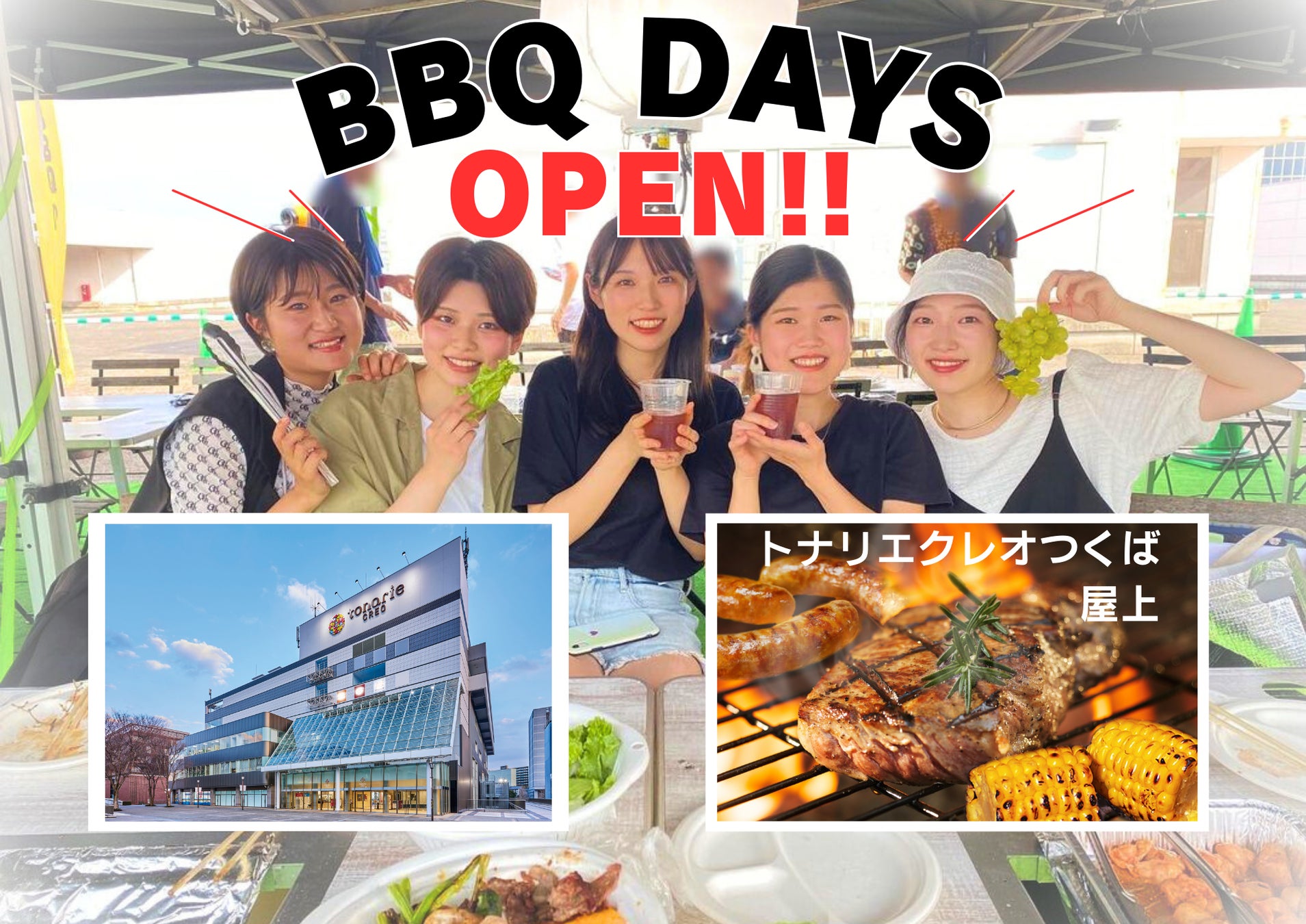 茨城県【トナリエクレオつくば】屋上バーベキュー会場「BBQDAYS」 が今年もオープン!! 期間限定(4/26~10/20)★★★《 全員ソフトドリンク飲み放題付き‼ 》 手ブラもOK!!